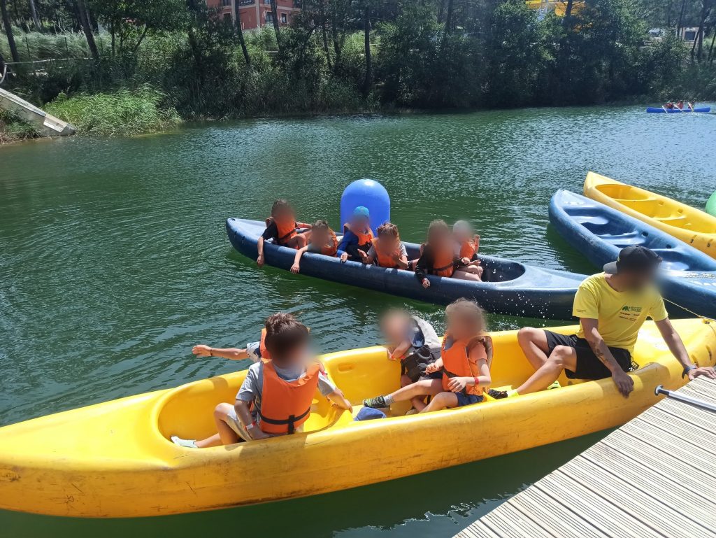E non nos esquezamos do paseo en canoa polo lago. Para os máis peques foi unha actividade máis relaxante xa que o que remaba era o monitor. Para os máis grandes foi máis divertido. Algunhas canoas empezaban o paseo dirixíndose directamente aos xuncos da beira do lago e pedindo a axuda dos monitores para que os desencallasen. Outras empezaban igual pero conseguían resolver soas esa situación saíndo dos xuncos coa única axuda dos remos e da coordinación dos seus tripulantes. Algunha canoa incluso rematou debaixo da cascada (non temos claro se por falta de experiencia cos remos ou foi algo claramente intencionado). Pero ao final a maioría conseguiron facerse coa canoa e dar un paseo polo lago.